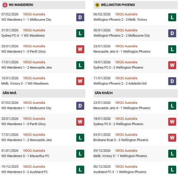 Wellington Phoenix lại đang có dấu hiệu ổn định hơn so với đối thủ. Trong 5 trận gần nhất, họ chỉ thua đúng một trận, còn lại là những chiến thắng và kết quả hòa khá tích cực. Đáng chú ý, Phoenix giữ sạch lưới trong một số trận đấu quan trọng, cho thấy sự cải thiện rõ rệt ở khâu tổ chức phòng ngự. Dù khả năng tấn công của họ không quá bùng nổ, nhưng lối chơi kỷ luật và chặt chẽ giúp Phoenix thường xuyên giành điểm trước các đối thủ có trình độ tương đương hoặc nhỉnh hơn.