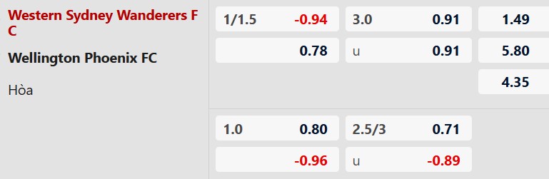 Thông tin tỷ lệ kèo Western Sydney vs Wellington: