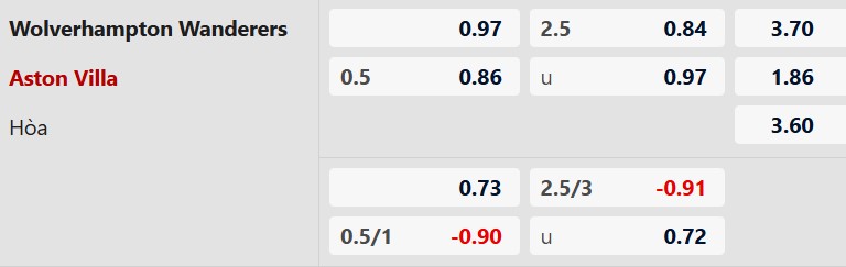 Thông tin tỷ lệ kèo bóng đá Wolves vs Aston Villa: