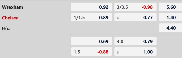 Thông tin tỷ lệ kèo bóng đá Wrexham vs Chelsea:
