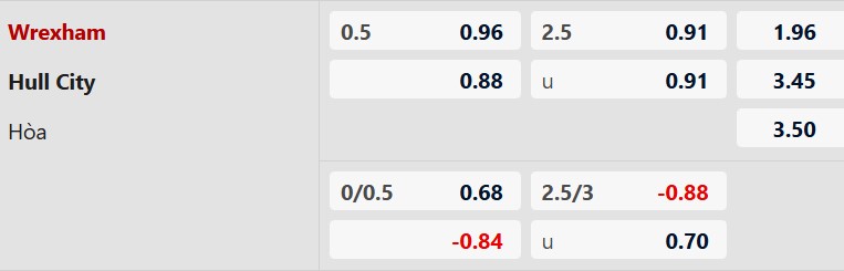 Thông tin tỷ lệ cược Wrexham vs Hull City: