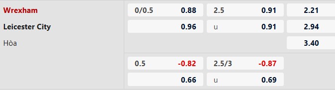 Thông tin tỷ lệ kèo Wrexham vs Leicester: