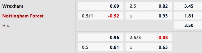Thông tin tỷ lệ bóng đá Wrexham vs Nottingham:
