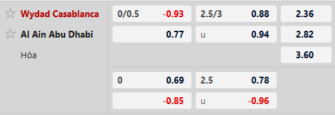 Thông tin tỷ lệ bóng đá Wydad Casablanca vs Al Ain: