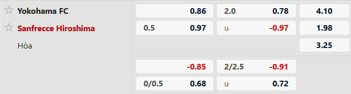 Thông tin tỷ lệ Yokohama FC vs Sanfrecce Hiroshima: