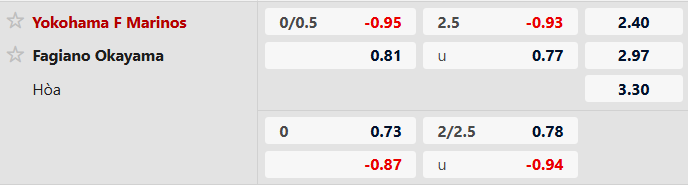 Thông tin tỷ lệ Yokohama FM vs Fagiano Okayama: