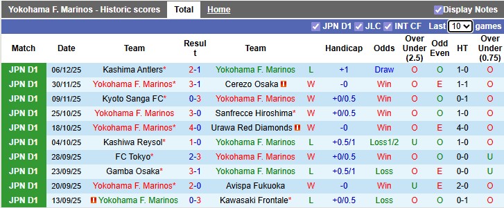 Thống kê phong độ Yokohama Marinos vs Machida: