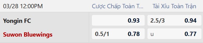 Thông tin tỷ lệ Yongin vs Suwon Bluewings: