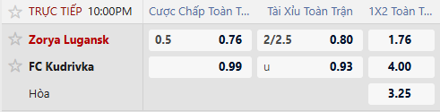 Soi kèo tài xỉu Zorya vs Kudrivka: