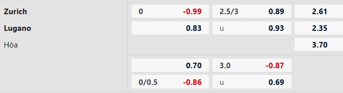 Thông tin tỷ lệ bóng đá Zurich vs Lugano: